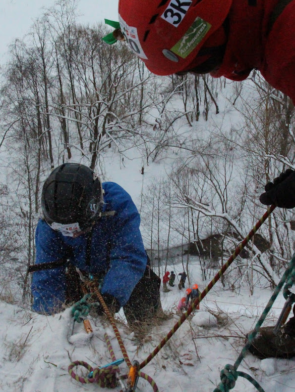 страховала Сашу, пока он спускался. Дальше организовала самосброс и спустилась