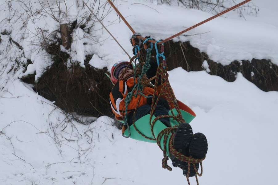 страховал. Я занималась полиспастом и перилами для пострадавшего. Даня –