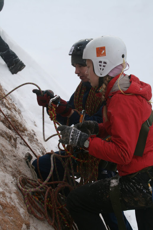 страховала Сашу, пока он спускался. Дальше организовала самосброс и спустилась